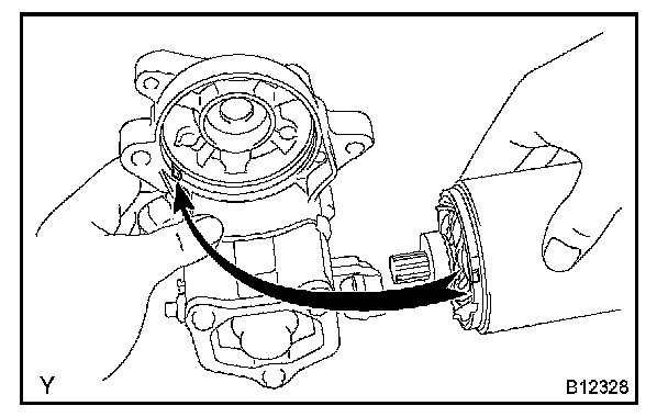 b. Align the protrusion of the starter yoke with the groove of the magnetic switch, and install the starter yoke and armature.