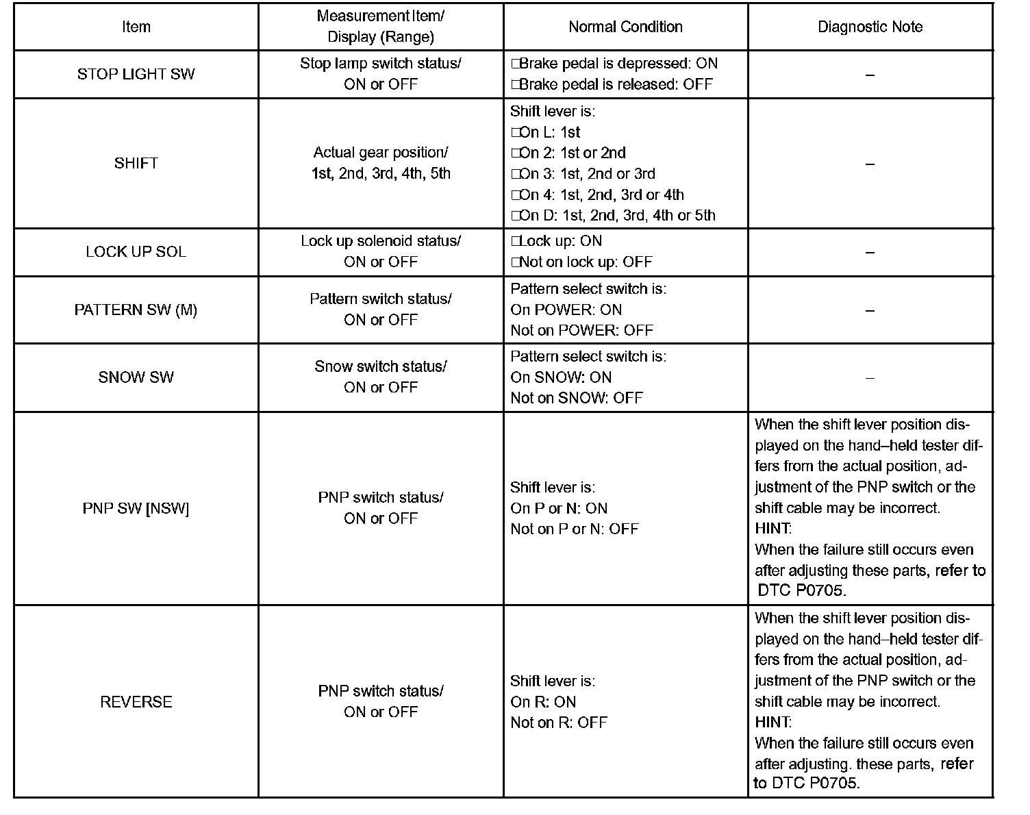 DATA LISTHINT: Using the hand-held tester's DATA LIST allows switch, sensor, actuator and other item values to be read without removing any parts. Reading the DATA LIST early in troubleshooting is one way to save time.