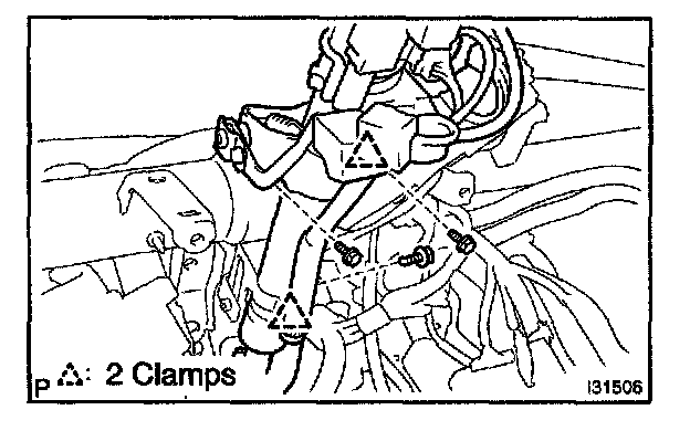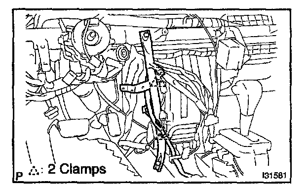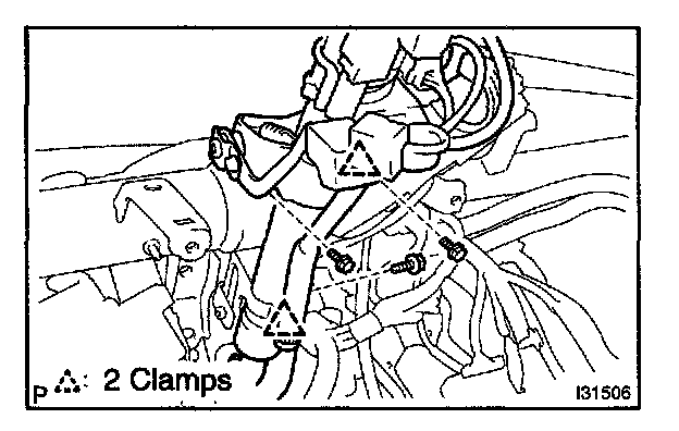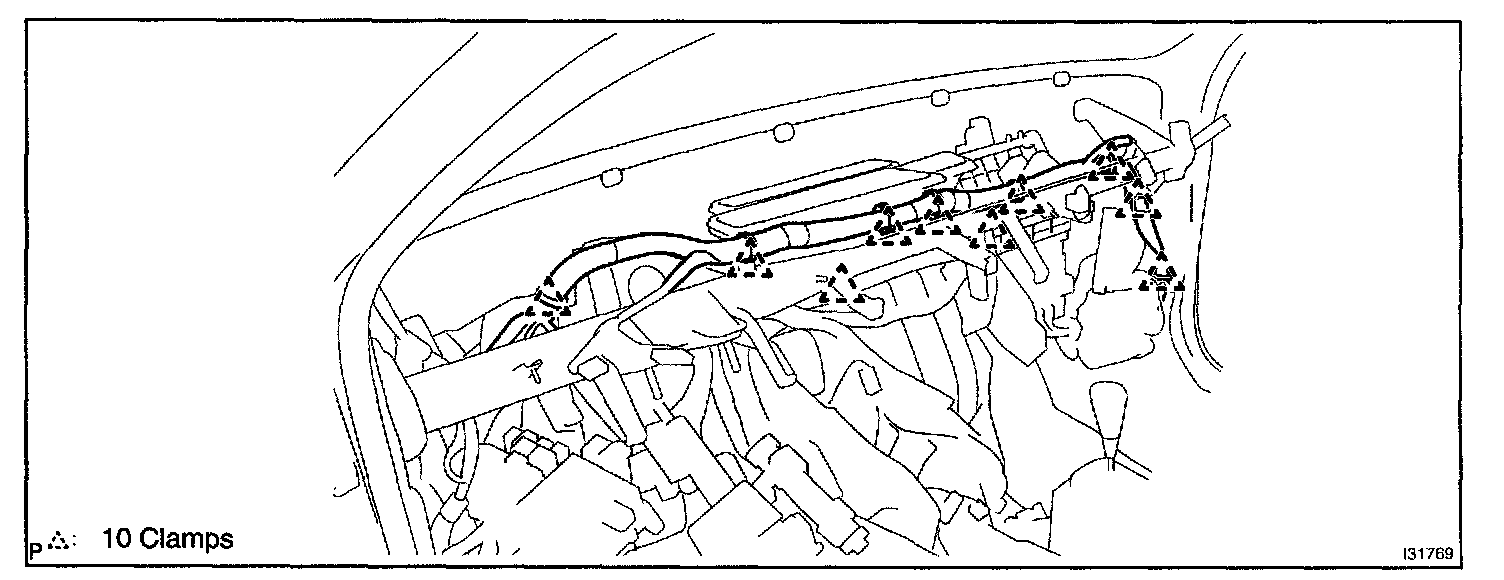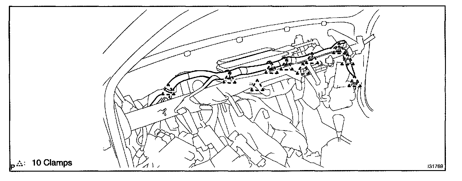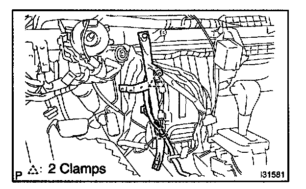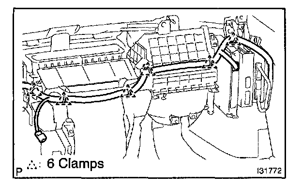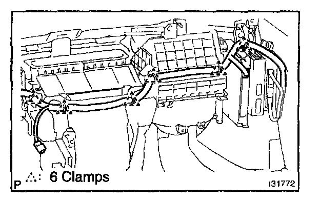 HINT: Confirm the direction of the piping clamp claw and SST using the illustration showing on the caution label.