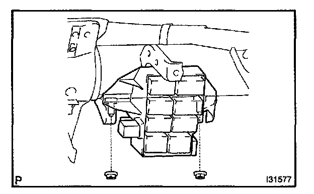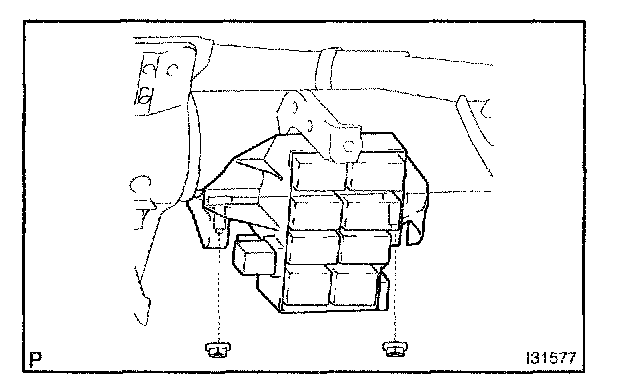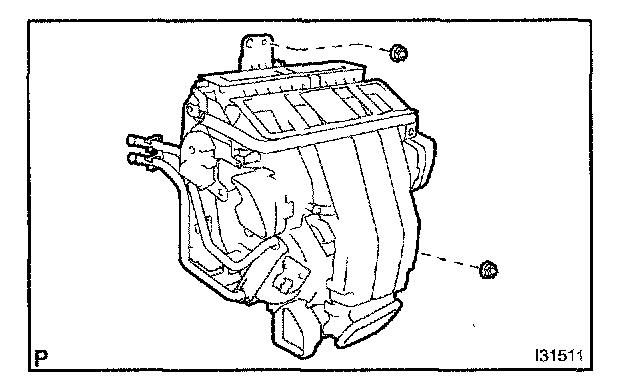 a. Remove the 2 nuts and air conditioning radiator assembly.
