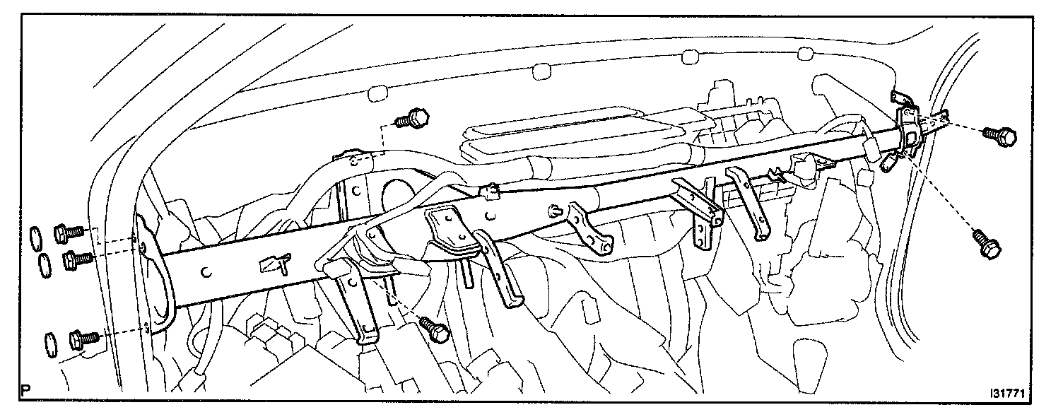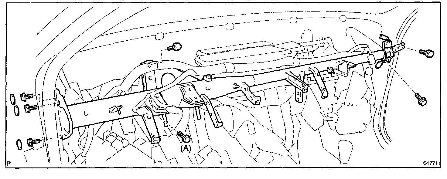 a. Install the instrument panel reinforcement with the 7 bolts and 3 caps.