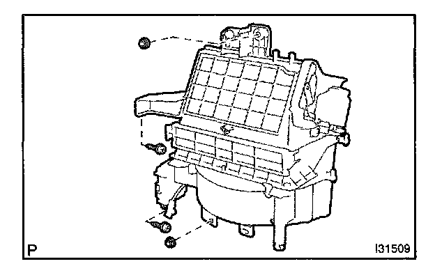 d. Remove the cooler evaporator sub-assembly No.1 from the heater case RH.