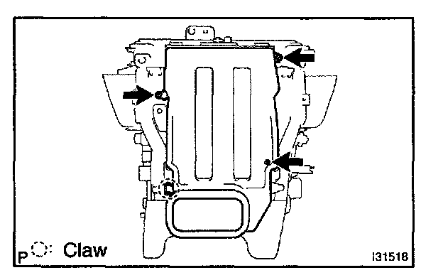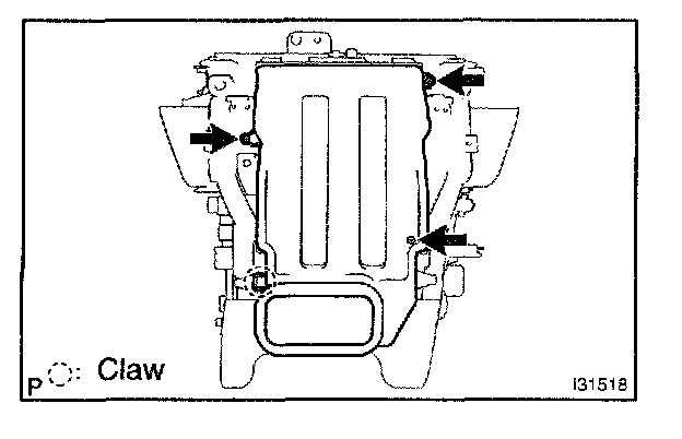 b. Install the cooler evaporator sub-assembly No.1 to the heater case RH.