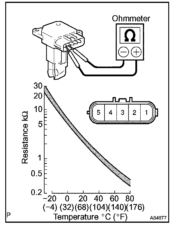 3. Blow air into the mass air flow sensor, then check that the voltage fluctuates.