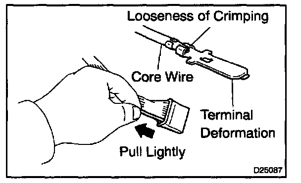 Check the wire harness by pulling lightly (missing terminal, terminal crimping condition, core wire break).