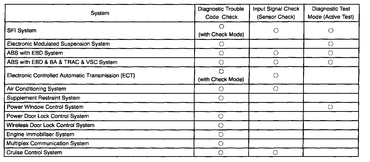 - The diagnostic system in LEXUS ES3OO has various functions. The first function is the Diagnostic Trouble Code (DTC) Check in which a malfunction in the signal circuits to the ECU is stored in code form in the ECU memory. Another function is the Input Signal Check which checks if the signals from various switches are sent to the ECU correctly. By using these check functions, possible areas of the problem can be narrowed down quickly and troubleshooting can be performed effectively. Diagnostic functions are incorporated in the following systems in LEXUS ES3OO.