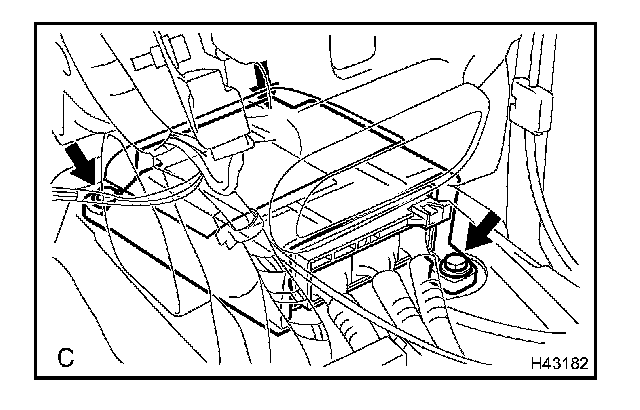 - When installing the airbag sensor assembly center, be careful that the SRS wiring does not interfere with other parts and is not pinched between other parts.