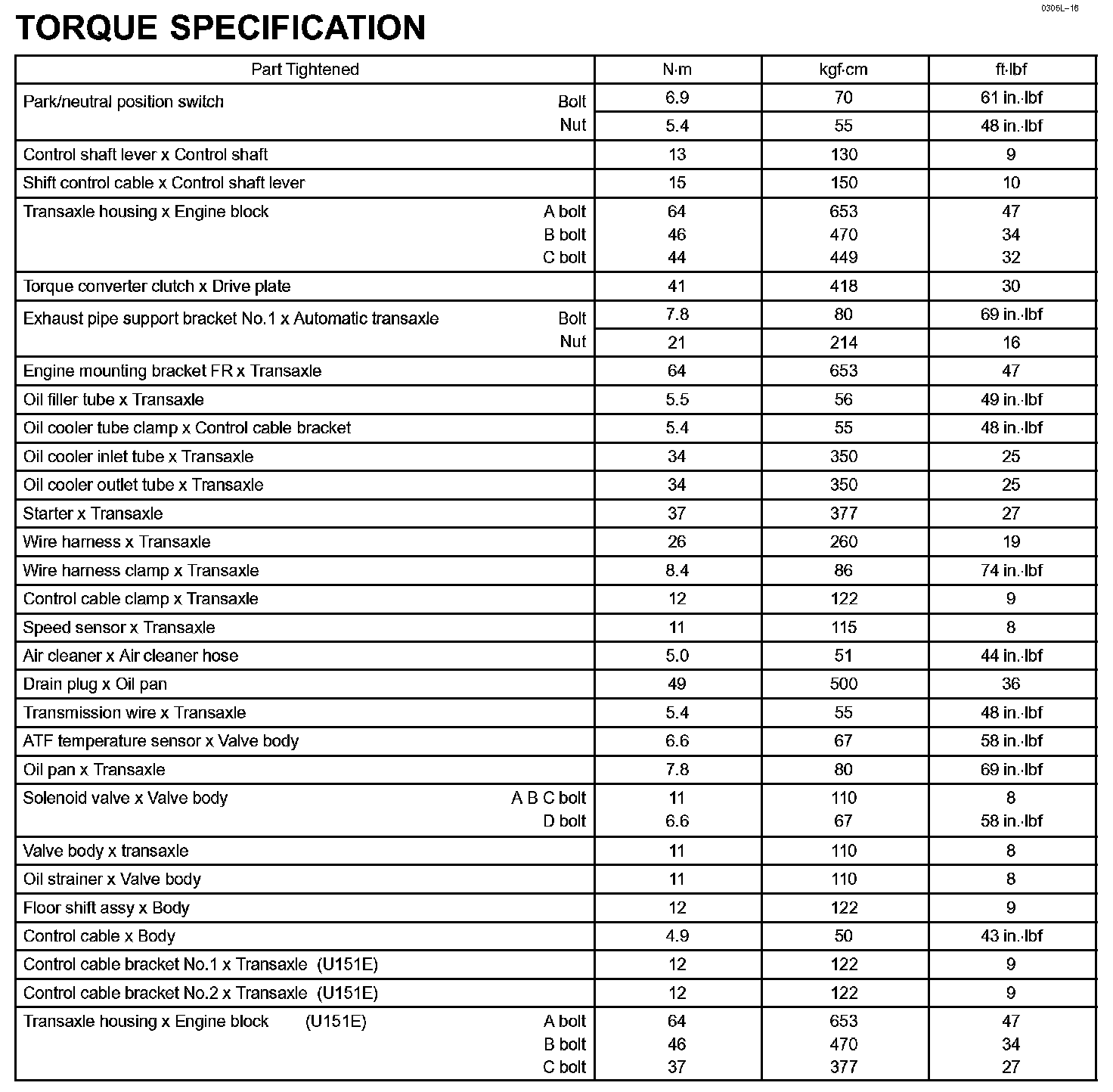 Automatic Transmission / Transaxle-Torque Specification: