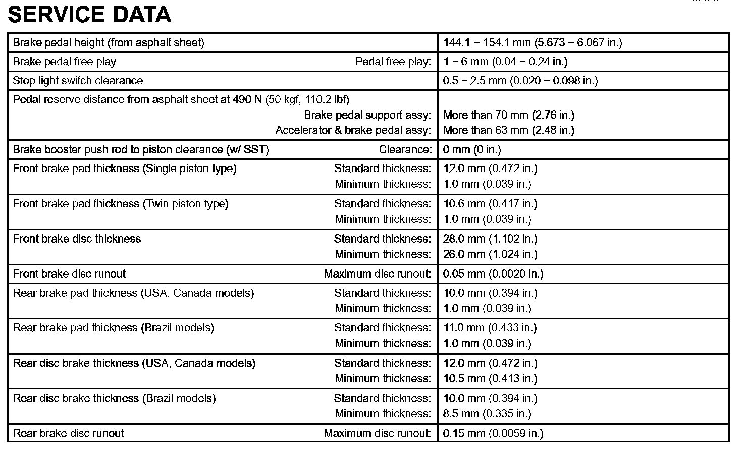Brake-Service Data: