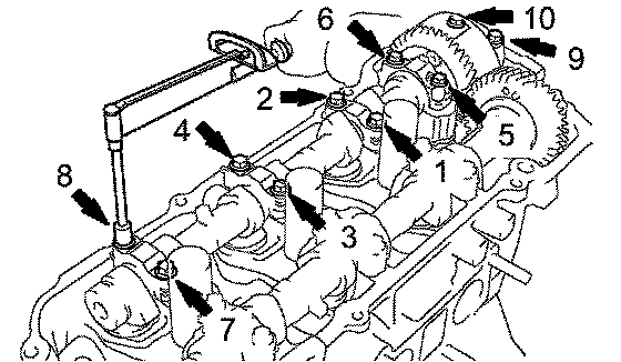 e. Retighten the cylinder head bolts by 90° in the same sequence as step (c).