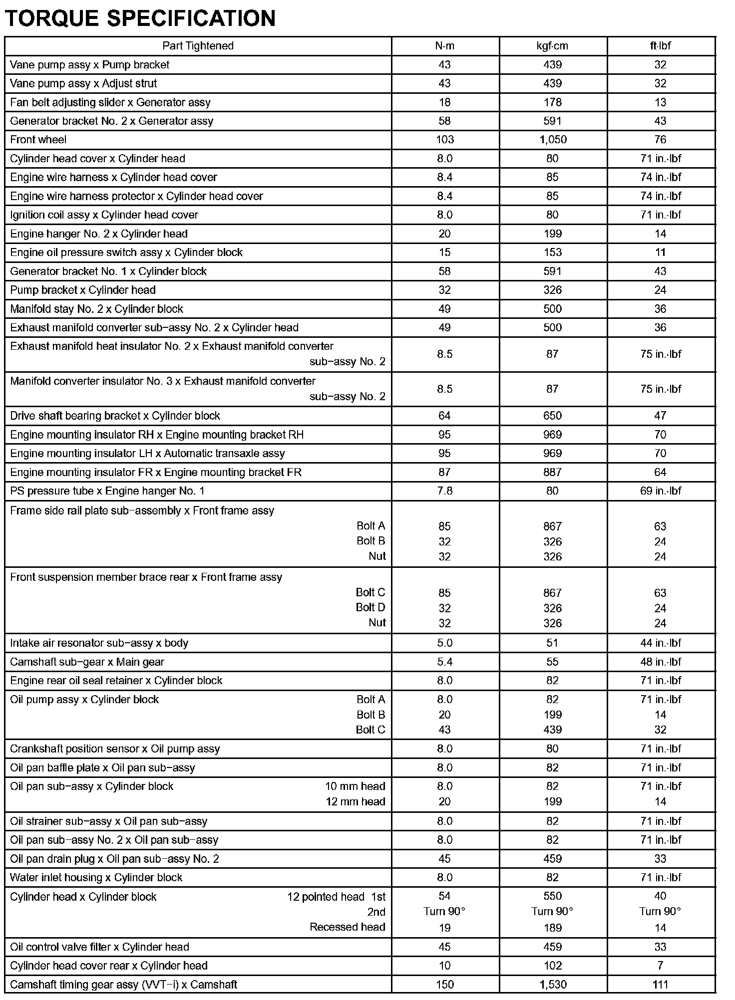 Engine Mechanical-Torque Specification (Part 2):