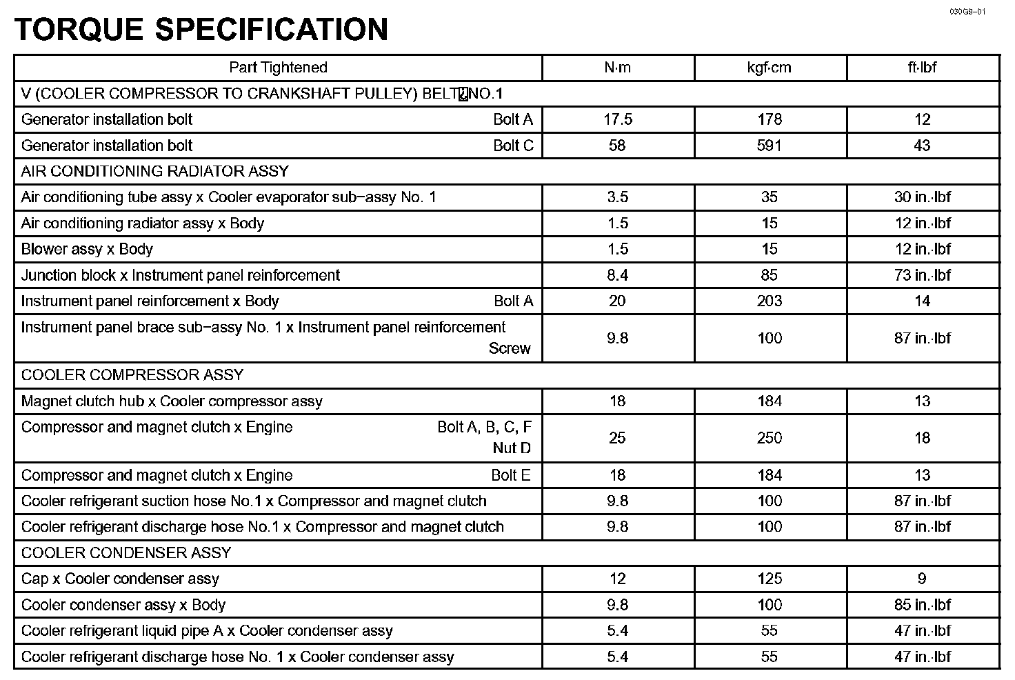 Heater & Air Conditioner-Torque Specification: