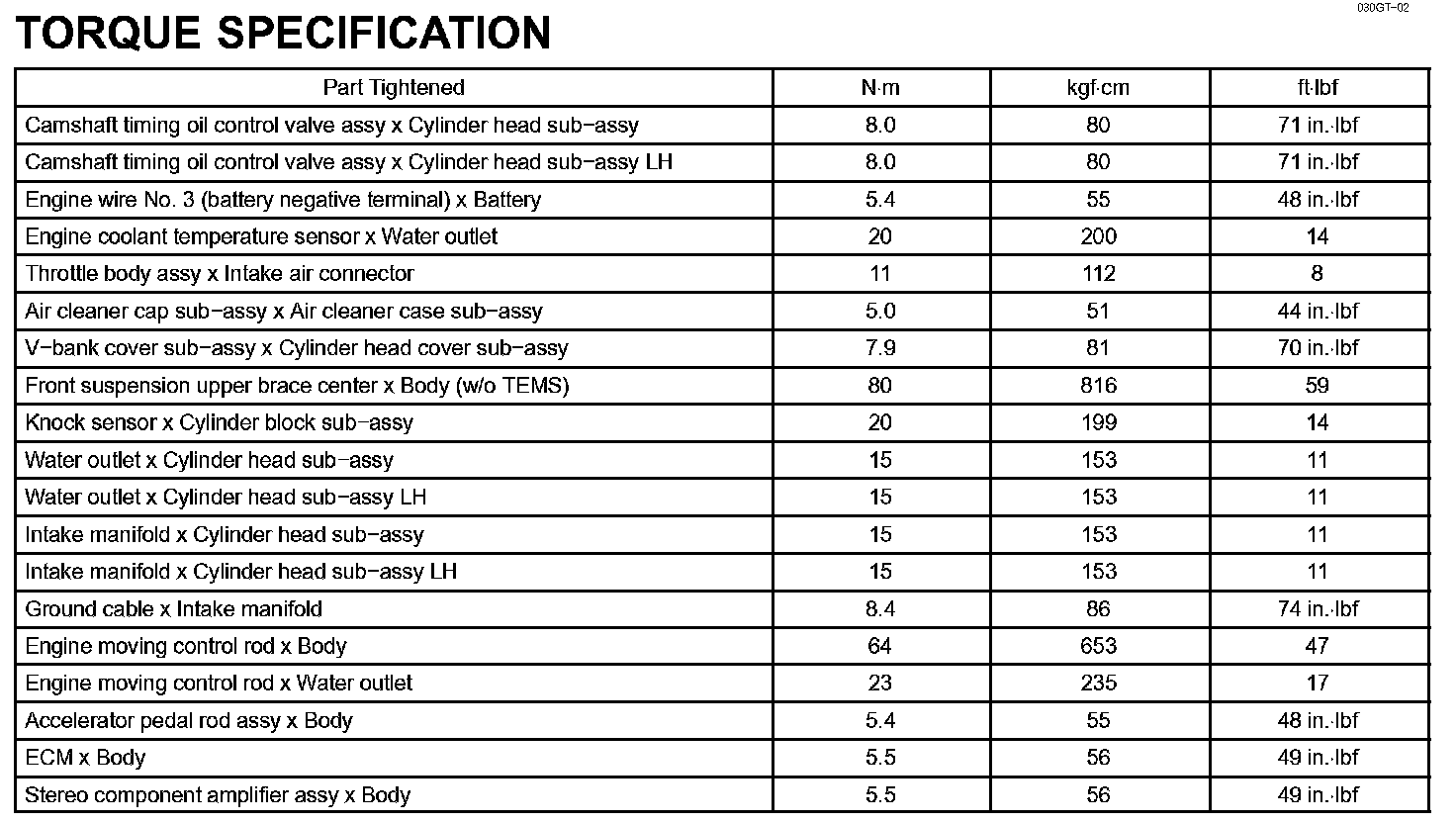 Engine Control System-Torque Specification: