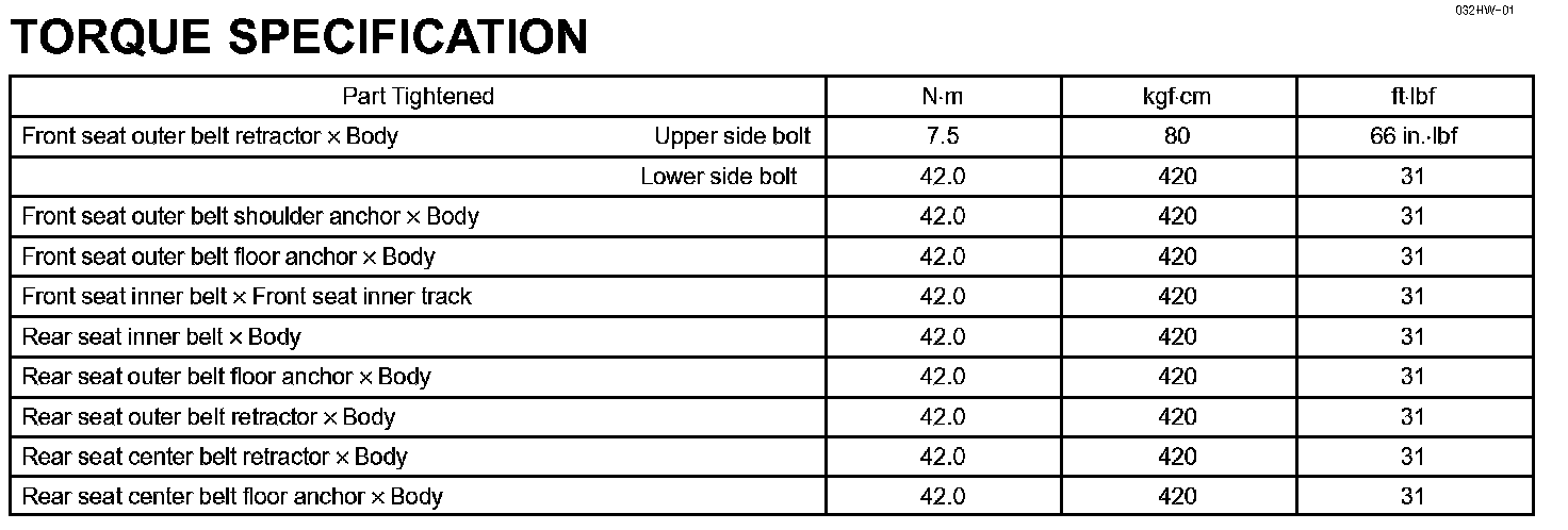 Seat Belt-Torque Specification: