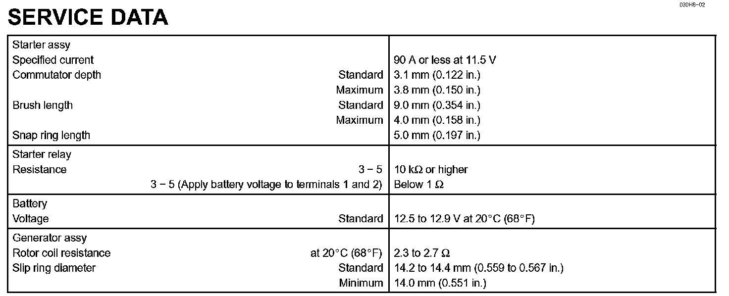Starting & Charging-Service Data: