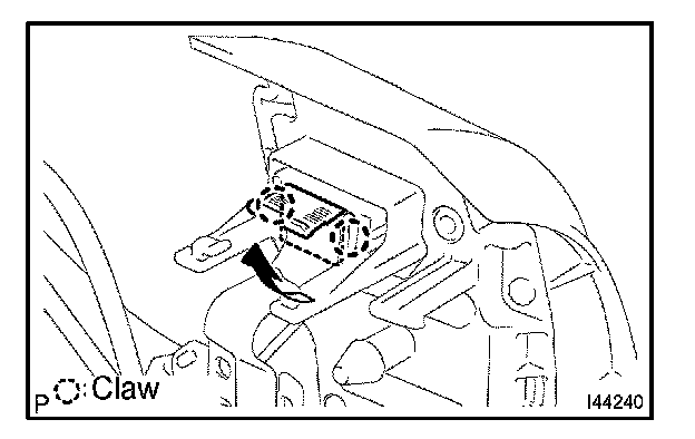 f. Disengage the 2 claws as shown in the illustration and open the latch on the top of the connector.