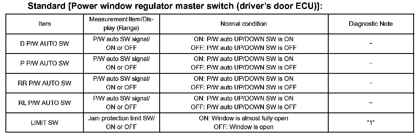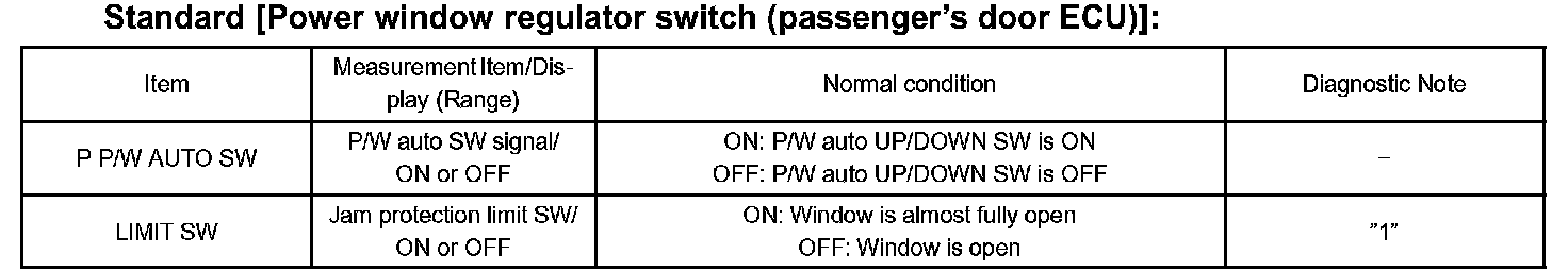HINT: "1" With the jam protection limit switch ON, the function of the jam protection will stop. If the switch does not come ON at the position where the windows are almost fully open, the windows will not fully close as the jam protection operates at the upper potion during the automatic UP performance.