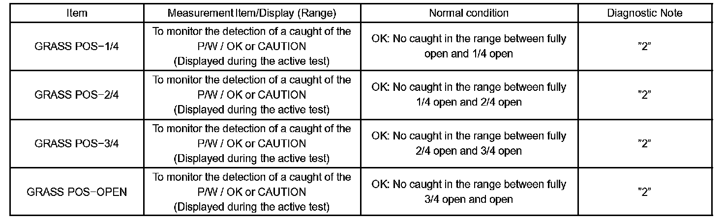 HINT: The next data list is possible when the power window operated with "Manual UP" during the Active Test.