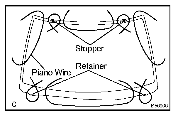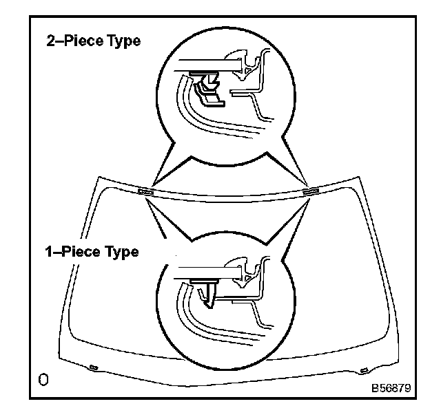 a. Install 2 new windshield glass retainers onto the glass as shown in the illustration.