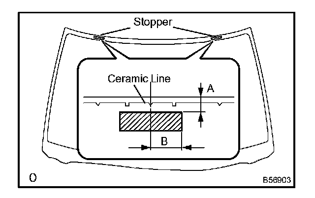 b. Install 2 new windshield glass stoppers No.2 onto the glass as shown in the illustration.