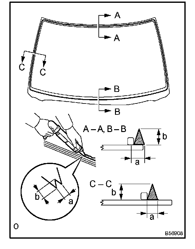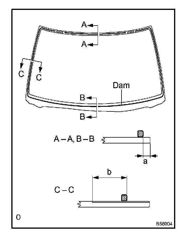 b. Install a new window glass adhesive dam as shown in the illustration.