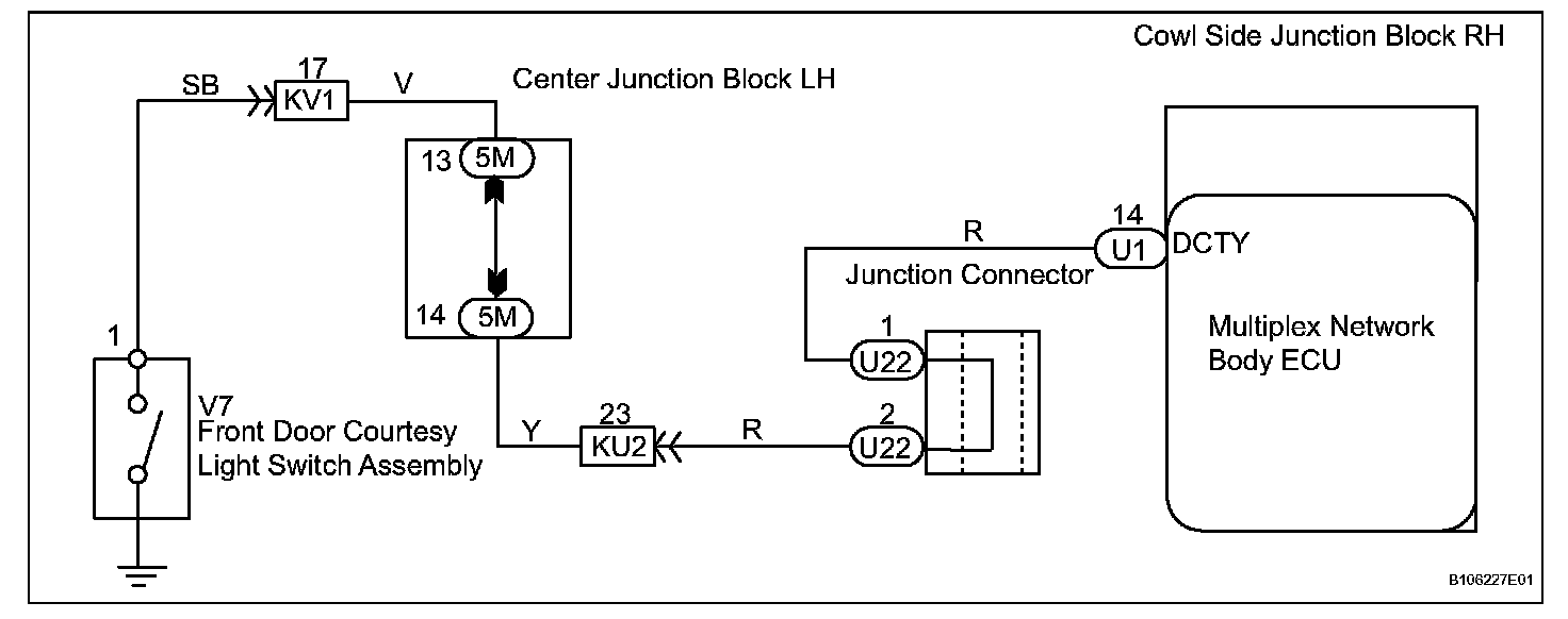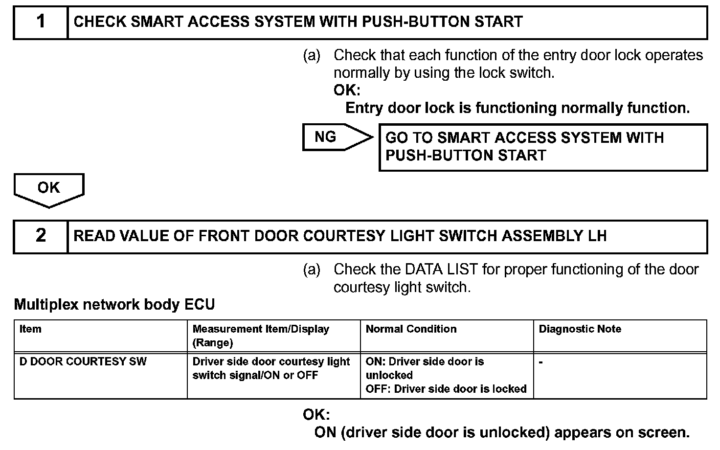 When the door control transmitter is in the vehicle or the door courtesy light ON signal is output to the ECU, performing the door lock operation with the lock switch on the outer handle will not lock the door.