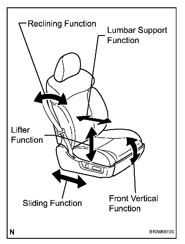 1. Operate the power seat switches and check to make sure each seat function works:
