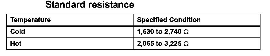 NOTE: In the table above, the terms "cold" and "hot" refer to the temperature of the coils. "Cold" means approximately -10 to 50 degrees C (14 to 122 degrees F). "Hot" means approximately 50 to 100 degrees C(122 to 212 degrees F).