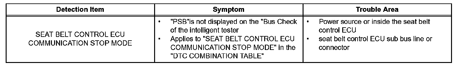 Seat Belt Control ECU Communication Stop Mode