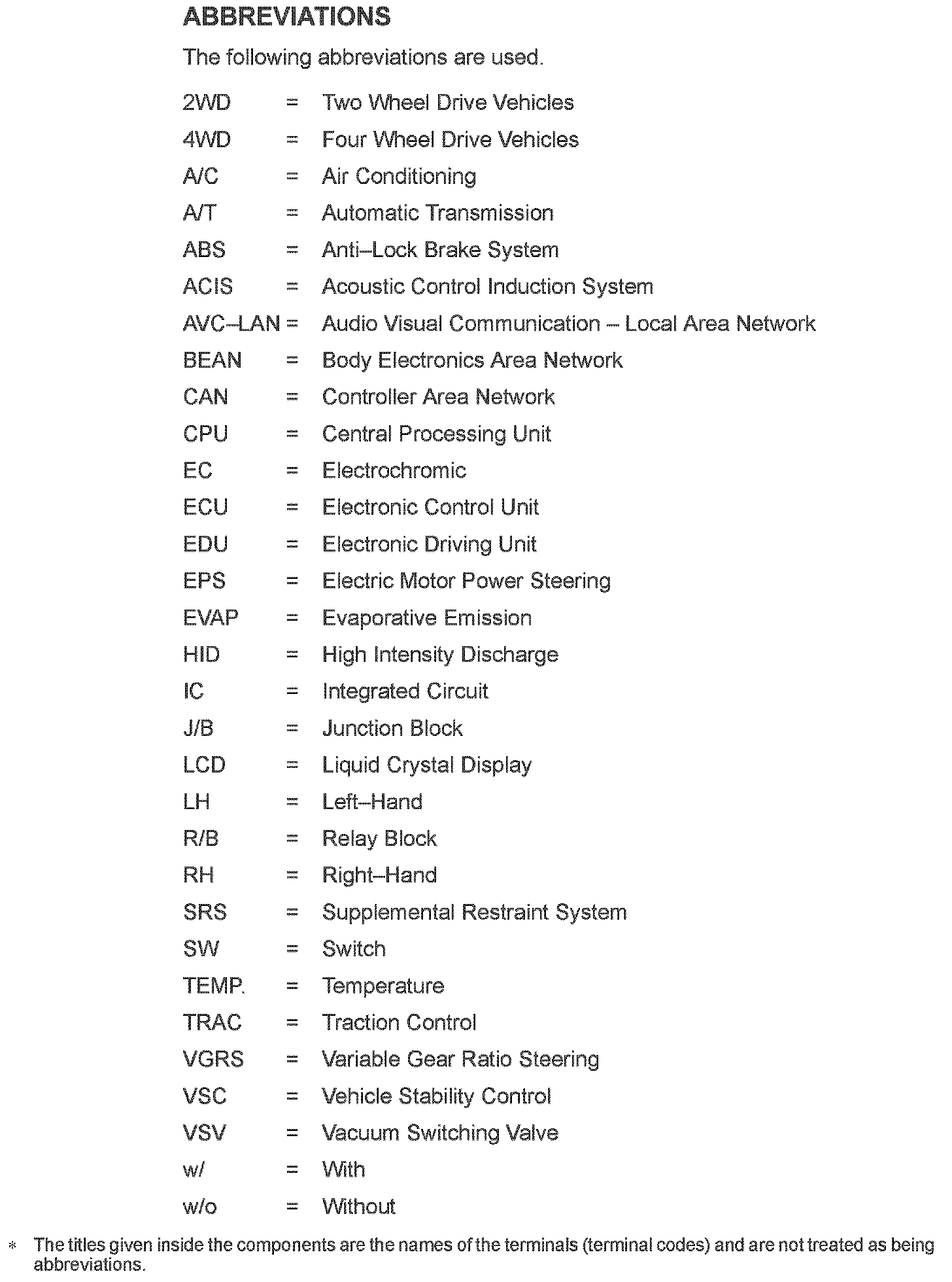 Abbreviations Used Within Diagrams