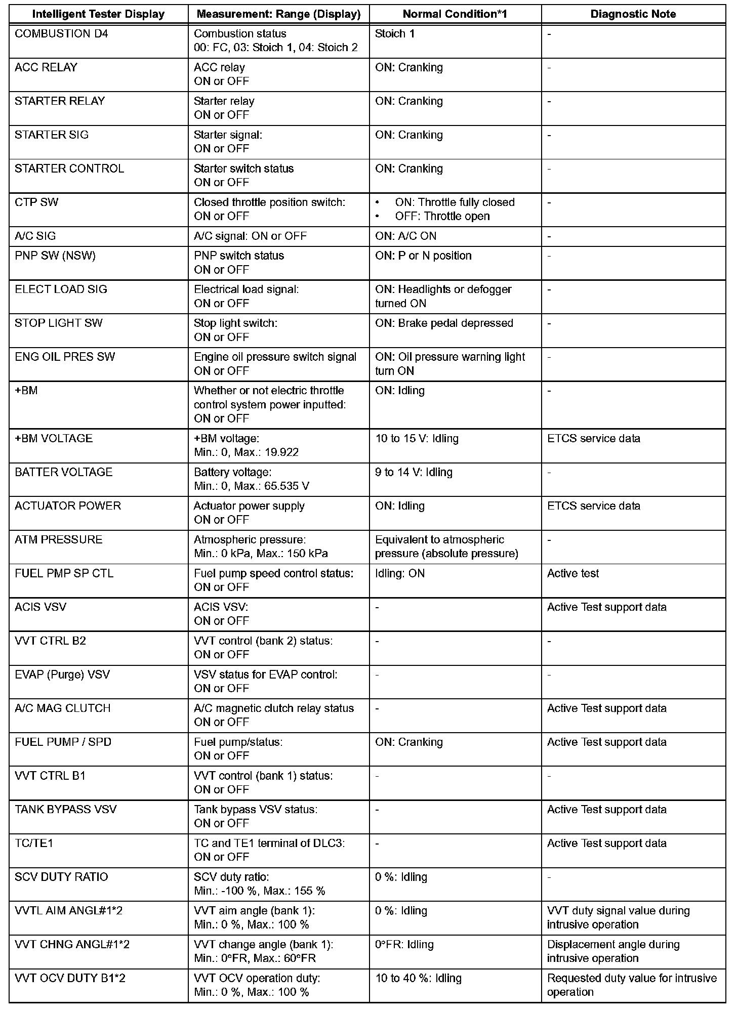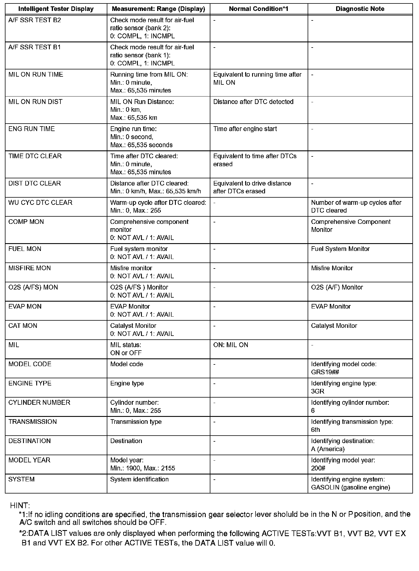 DATA LISTHINT: By reading the DATA LIST displayed on an intelligent tester, you can check values, including those of the switches, sensors, and actuators, without removing any parts. Reading the DATA LIST as the first step of troubleshooting is one method of shortening diagnostic time.