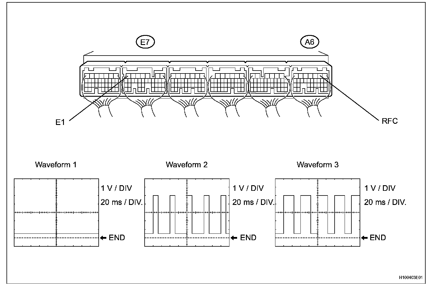 f. Using the intelligent tester, check the waveform between terminals A6-10 (RFC) and E7-7 (El) of the ECM.