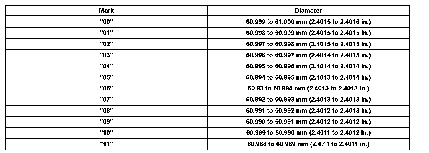 Diameter: 52.992 to 53.000 mm (2.0863 to 2.0866 inch)