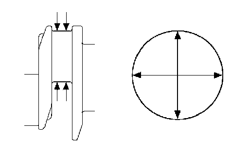 Check each main journal for taper and out-of-round as shown in the illustration.