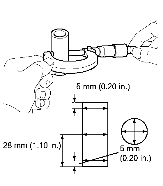 Using a caliper gauge, measure the inside diameter of the connecting rod bushing.
