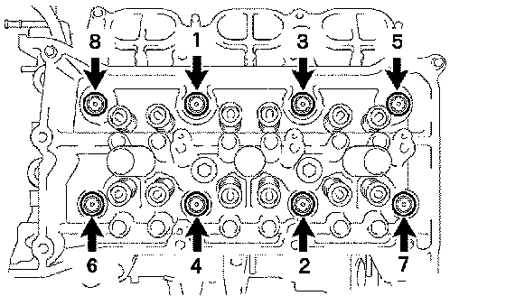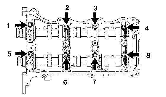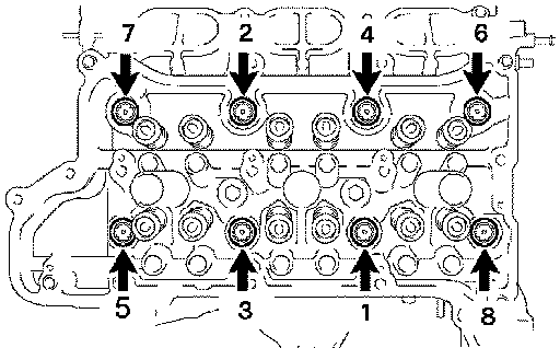 Temporarily tighten the 8 bolts in the order shown in the illustration.