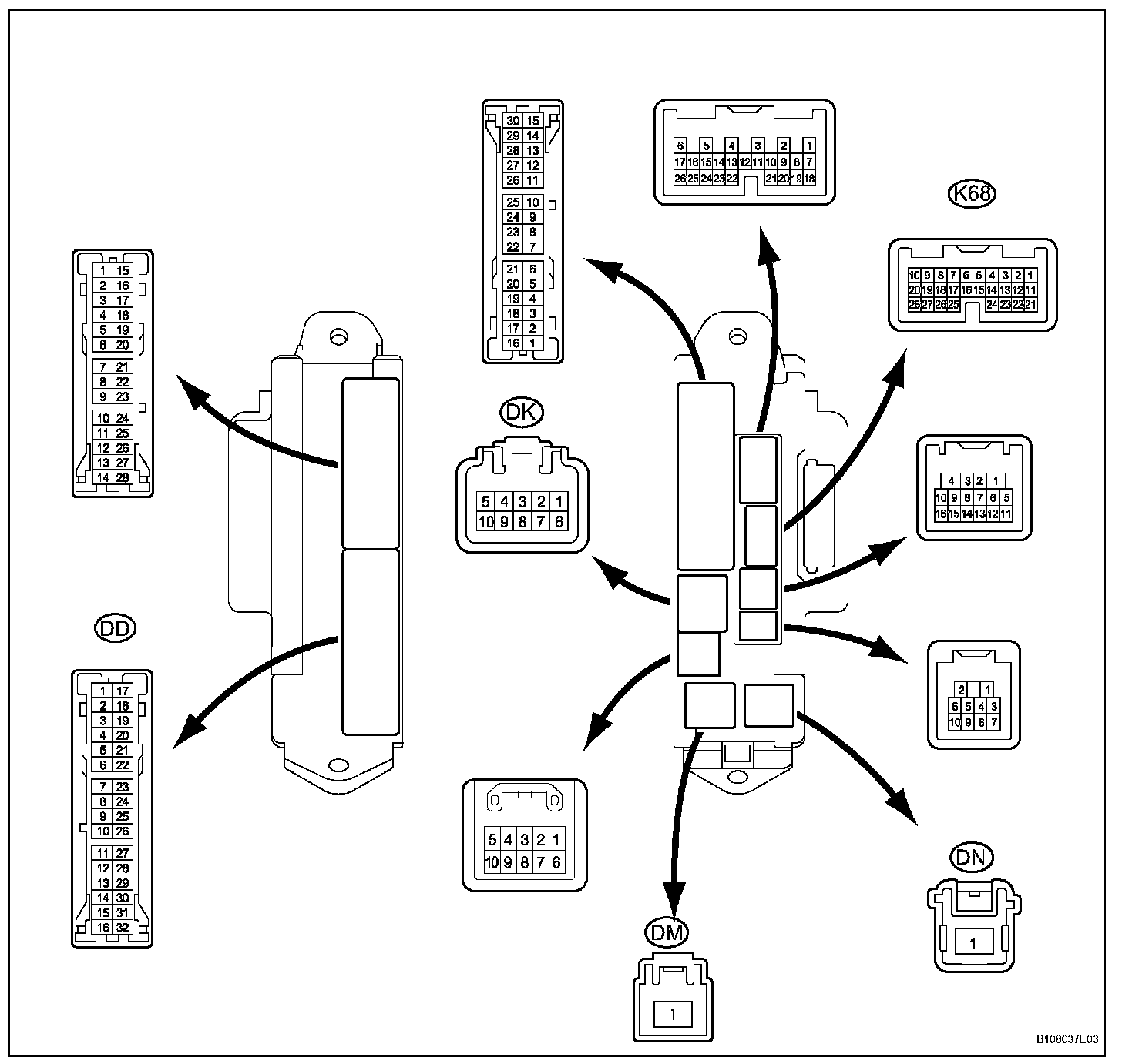 c. Reconnect the DD, DK, DM and DN junction block connectors.