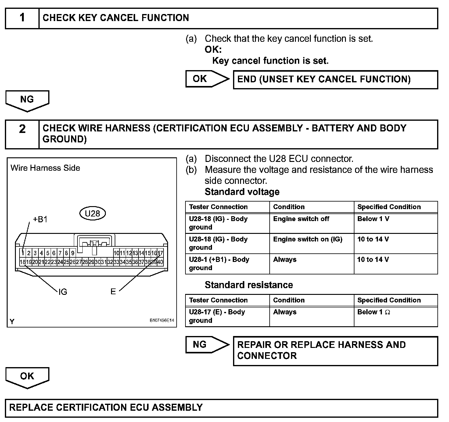 When the entry functions do not operate at all, it is possible that the certification ECU is malfunctioning or that the wire harness leading to the certification ECU is short-circuited.