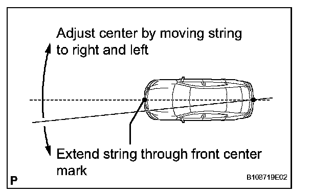 1. Hang the string (with weight) from the center of the vehicle rear's emblem. Mark the vehicle rear's center point on the ground. Repeat for the front of the vehicle.