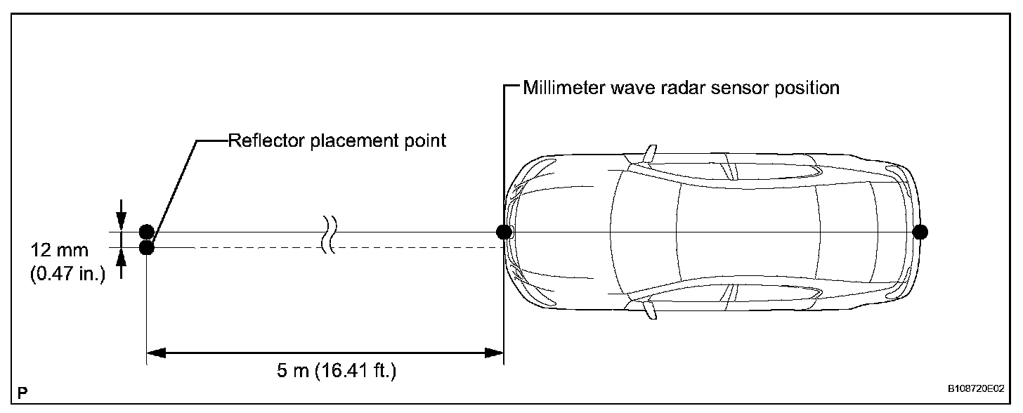 3. Using a tape measure, measure 12 mm (0.47 in.) to the left of the 5 m (16.41 ft.) position. Place the reflector at that position.
