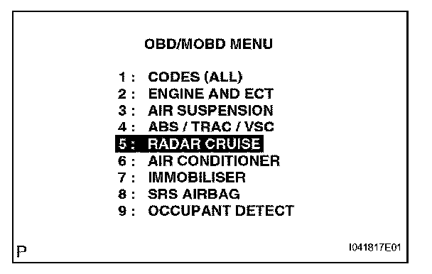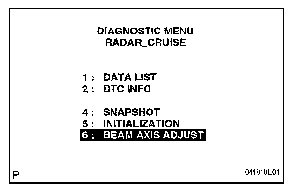 4. Operate by following the screen menus. Select "BEAM AXIS ADJUST" of Radar Cruise Control, and then press the "ENTER" key.