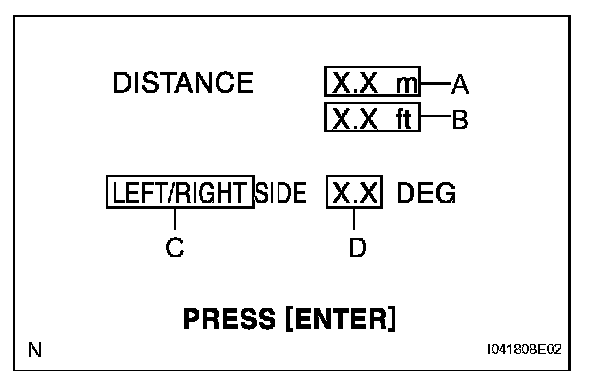 - Pressing the "ENTER" key will make the ECM transfer to BEAM AXIS ADJUST MODE.