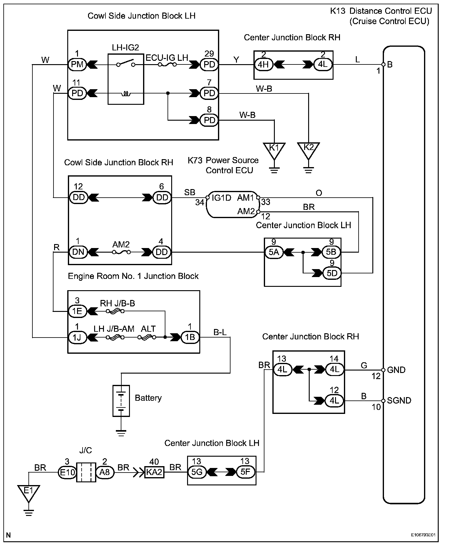 Distance Control ECU Power Source CircuitDESCRIPTION