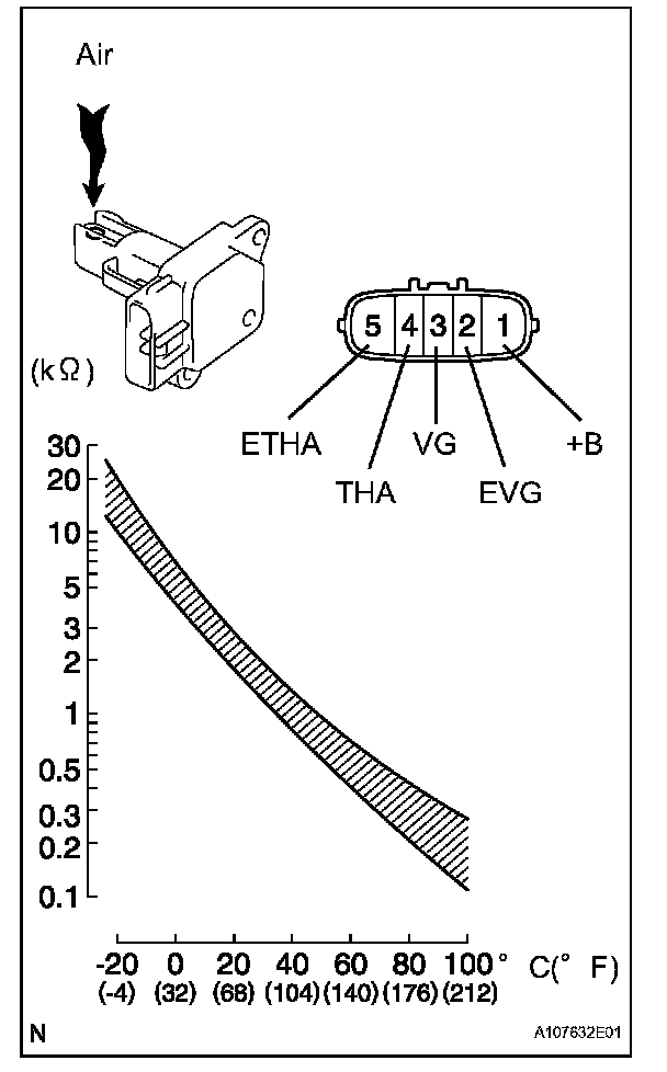 b. Measure the resistance between terminals 4 (THA) and 5 (ETHA).