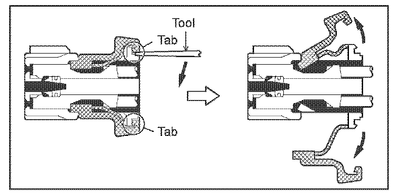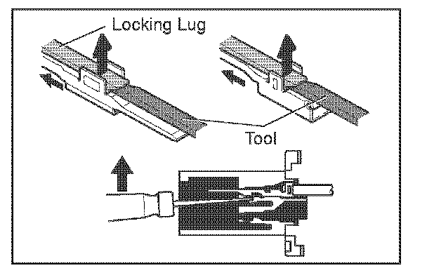 a. Locking device must be disengaged before the terminal locking clip can be released and the terminal removed from the connector.