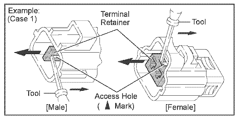 Type which cannot be pulled as far as Power Lock insert the tool straight into the access hole of terminal retainer as shown.