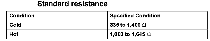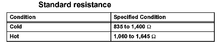 ON-VEHICLE INSPECTIONNOTE: In this section, the terms "cold" and "hot" refer to the temperature of the coils. "Cold" means approximately -10 to 50 degrees C (14 to 122 degrees F). "Hot" means approximately 50 to 100 degrees C (122 to 212 degrees F).