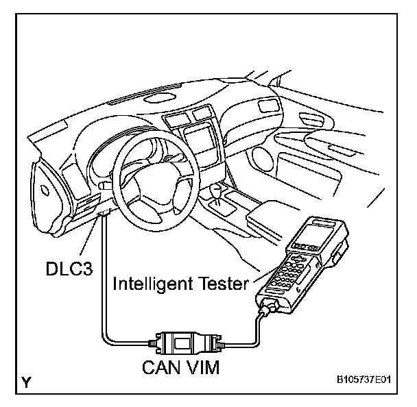 Connect the cable of the intelligent tester to the DLC3, turn the ignition switch on (IG) and attempt to use the tester. If the display indicates that a communication error has occurred, there is a problem either with the vehicle or with the tester.