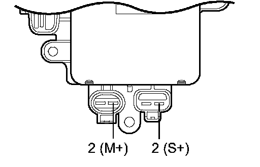 (1) Connect the 400 A probe of the ammeter to the terminals 2 (M+) and 2 (S+) of the cooling fan motor.