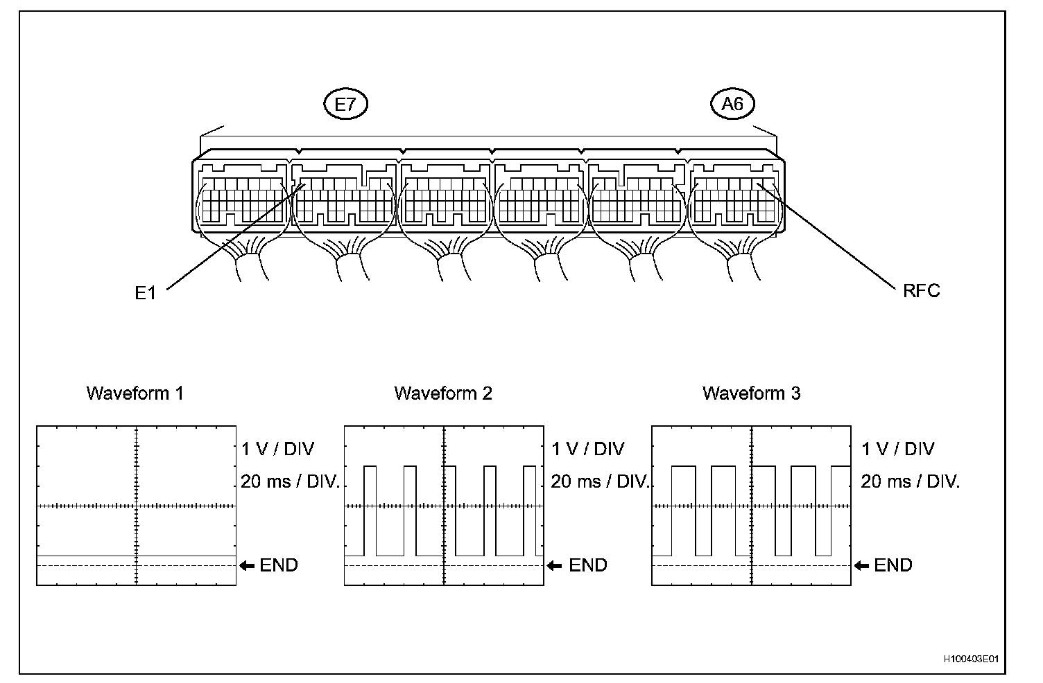 (3) Using the intelligent tester, check the waveform between terminals A6-10 (RFC) and E7-7 (El) of the ECM.